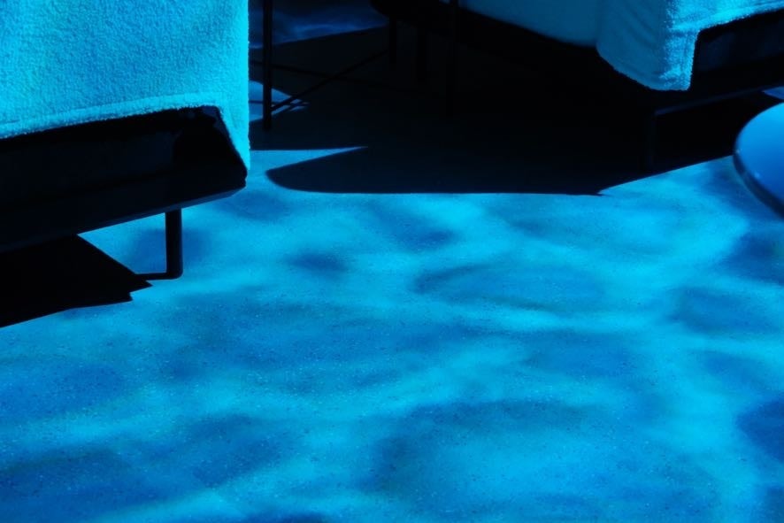 さまざまな空間演出をとり行う株式会社ミューによる”水面が映る照明演出”が空間を彩ります。